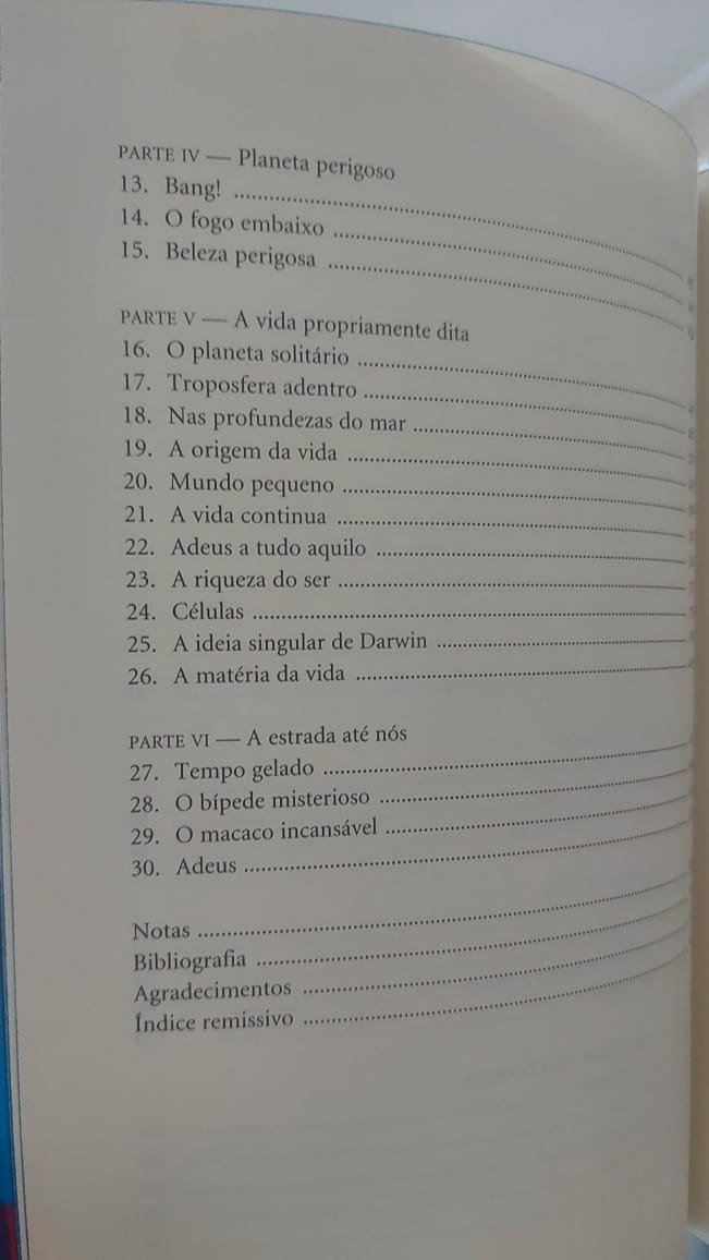 Um inventário de tudo o que sabemos sobre o mundo, da origem do universo até os dias de hoje, explicado de maneira clara até para o leitor de primeira viagem. Vencedor do prêmio Aventis 2004, o livro teve os direitos de publicação negociados em 29 países e vendeu mais de 2 milhões de exemplares na Inglaterra.