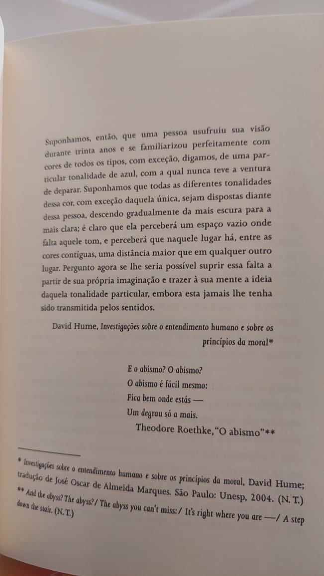Quanto mais ele descobre os muitos segredos dessa família, mais a viagem ganha ares de thriller. Edgar não é mais o mesmo homem: o turbilhão (do qual ele não sabe quando nem como sairá) já lhe deixou marcas indeléveis. Logo nele, que parece querer passar pela vida sem deixar assinatura. • Inspirado na obra do gigante do Iluminismo David Hume, O Tom Ausente de Azul: Uma Aventura Filosófica faz referências a Sócrates, Sartre, Freud, Piaget e Tolstói, entre tantas outras figuras consagradas.