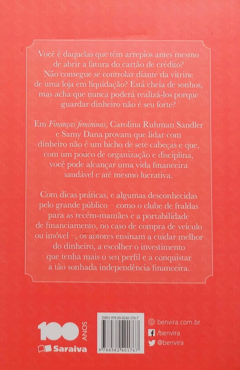 Compre aqui o livro Finanças Femininas. Como Organizar Suas Contas, Aprender a Investir e Realizar Seus Sonhos, Carolina Ruhman Sandler.