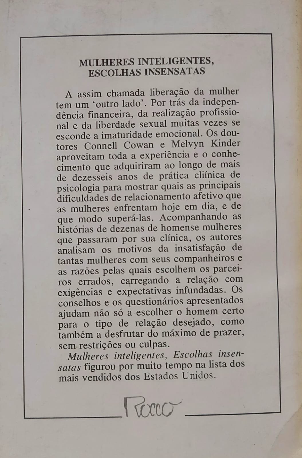 Mulheres Inteligentes, Escolhas Insensatas. Connell Cowan, Melvyn Kinder, Editora Rocco.