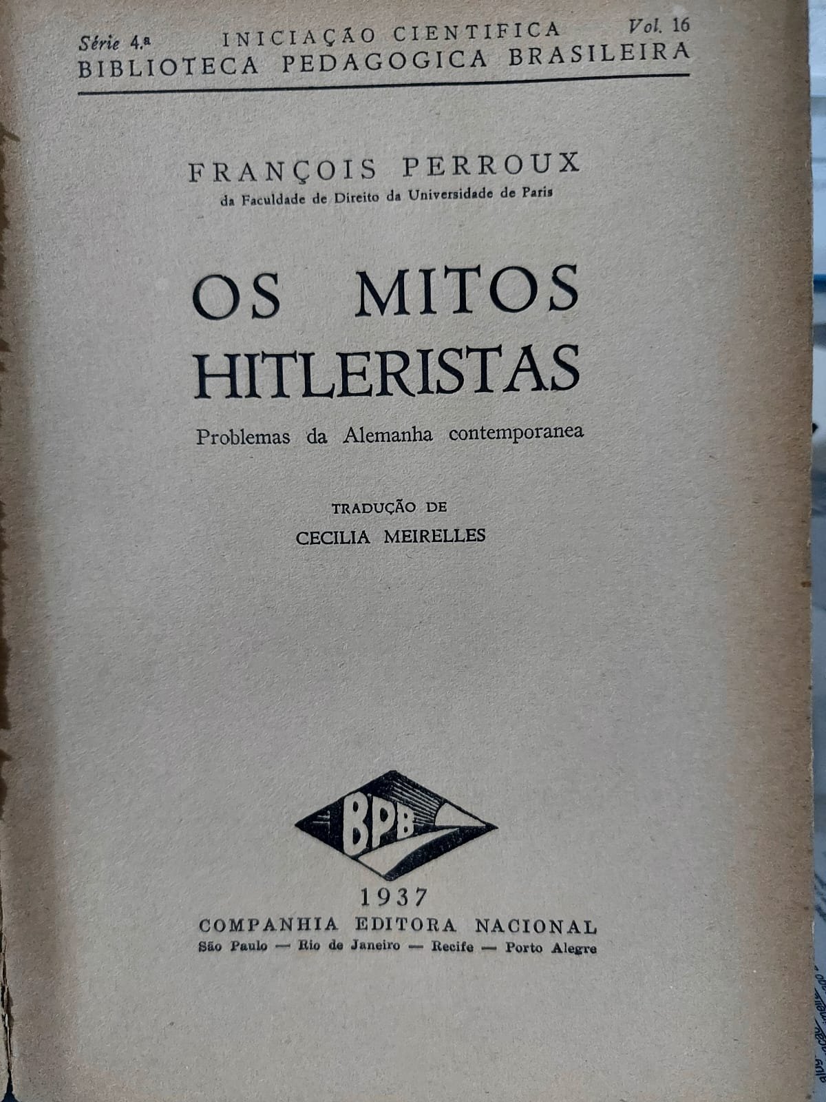 Os Mitos Hitleristas, Problemas da Alemanha Contemporânea, François Perroux, Edição de 1937, Companhia Editora Nacional.